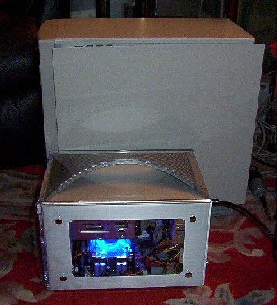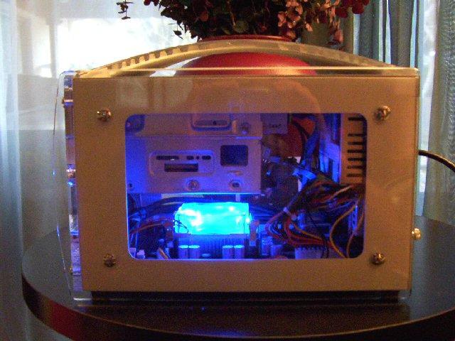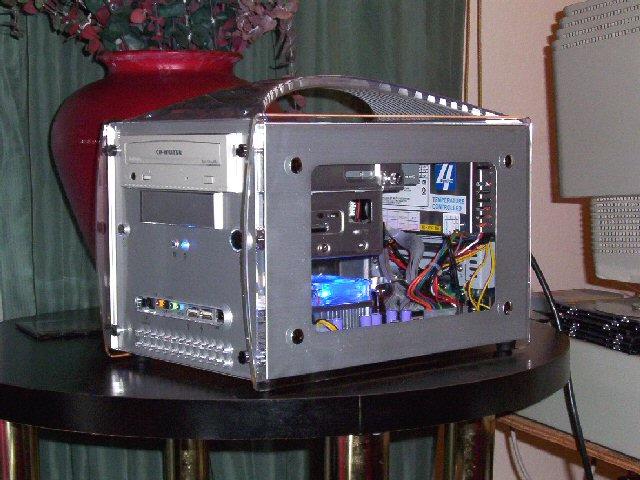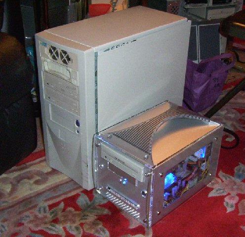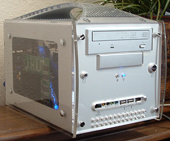 Here are a few shots of this awesome system. Click on any one of the small images to see a larger picture. You can see how compact it is next to a standard mid-tower computer. Contact us if you're ready to have one configured for you.